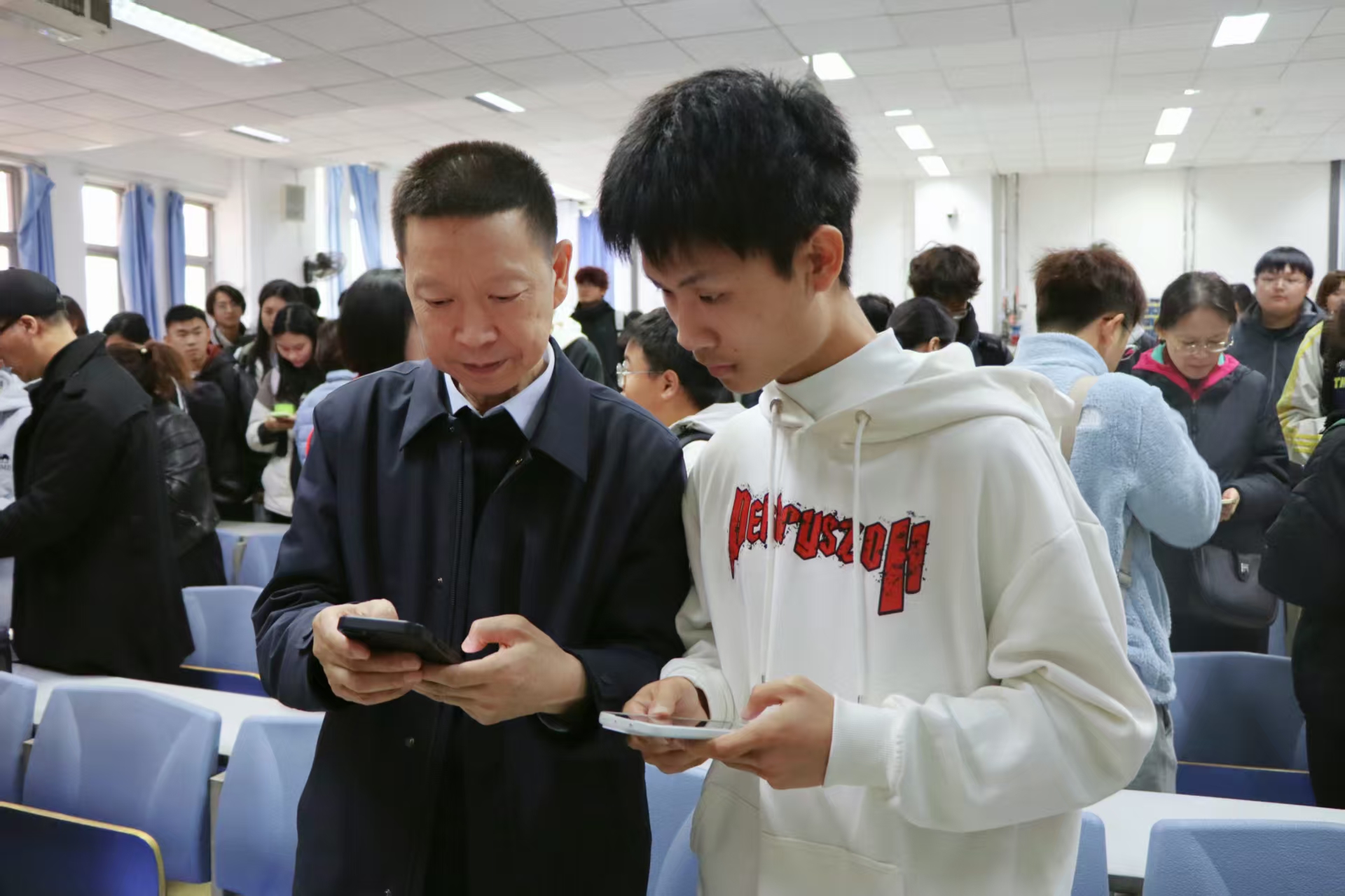 在随后进行的导师与新生面对面交流环节中,同学们为导师送上写满祝福的贺卡,气氛温馨而热烈。新生们就专业前景、课程选择、科研入门等方面的困惑踊跃提问,导师们则结合自身求学、科研经历,耐心细致地一一解答,为他们拨开迷雾,点亮前行的灯塔。